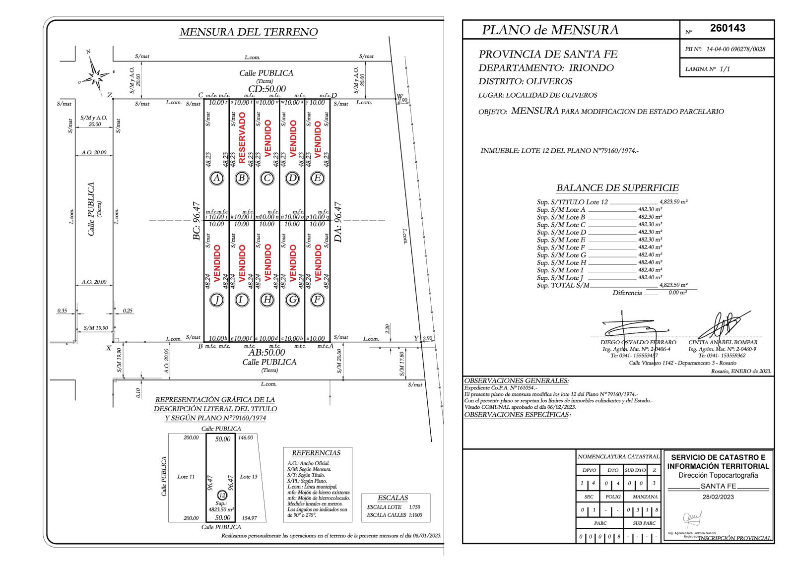 1119-AE00006 VENTA Oliveros: Ruta Nacional 11 en el km 356. Último Lote de terreno en venta en zona semirrural de 482,30 m2 lado rio, de 10x48,23 mts. Lote A disponible. Lotes C, D, E, F, G, H, I y J vendidos, Lote B reservado. Ubicación: -32.539951, -60.857101 (32°32'23.8"S 60°51'25.6"W)- Ingreso calle de tierra por ex silos Bacalini. Plus Codes de Ubicación: F46V+27J Correa, Santa Fe Próximamente servicio de luz eléctrica ya se colocaron las columnas, terrenos delimitados con postes de madera. Orientación: Norte. Apertura de calles en obras. Zona alta nunca inundada ni inundable. Perforación de agua a 32 mts. Forestación con 10 arboles de Acacias, Moras, Fresnos, Lapachos rosados y cítricos. Forma de pago: El precio publicado es en 1 pago en efectivo (USD12.000), Gastos de escribanía a cargo del comprador. Financiación: Opción 1: Entrega USD3000 y resto 17 cuotas de USD650 (USD14.000 Total). Opción 2: Entrega USD2.000 y resto 28 cuotas de USD500 (USD16.000 Total). Opción 3: Entrega USD1000 y resto en 40 cuotas de USD400 (USD17.000 total). Bajos impuestos: API $2700 anual y TGI $1800 anual. Ubicación: A 800 mts de la Ruta Nacional 11 en el km 356 y 1000 mts del río Carcarañá. A 1 km de Campo Timbó, Único complejo Termal de la Provincia de Santa Fe. Zona alta. Sin Cerco perimetral, Lotes aledaños Parquizados. Todos los lotes lindantes tienen construcciones residenciales nuevas. Ubicados en zona privilegiada para descansar los fines de semana, pescar por la proximidad al río Carcarañá, disfrutar en familia de un paisaje campestre. Entorno: La comuna de Oliveros se encuentra en Argentina, Provincia de Santa Fe, en el Departamento Iriondo, a 116 km de Santa Fe (capital), 29 km de Cañada de Gómez (Cabecera Departamental), y a 52 km al noroeste de la Ciudad de Rosario, por la RN 11. Tiene 6.000 habitantes. Posee una Estación Experimental Agropecuaria, del Instituto Nacional de Tecnología Agropecuaria (INTA). Posee dos balnearios. El RIO CARCARAÑA nace en Córdoba y desemboca uniéndose con el Coronda y el Paraná en Puerto Gaboto, en un lugar llamado La Boca. Por el RIO CARCARAÑA se puede navegar a través de kayaks, piraguas, gomones, Jet Ski y lanchas de motor muy chico. Las lanchas grandes no pueden navegar ya que el Carcarañá en esta parte no tiene un caudal apto para la navegación de estas. Cuando el RIO CARCARAÑA está bajo de nivel se pueden observar la formación de cascadas. Estas cascadas se pueden ver únicamente navegando el lecho del Carcarañá. En Oliveros hay 6 bajadas permitidas para practicar la pesca, Las especies que se pueden pescar son diversas: Moncholo, Armado, Mandubí, Patí, Boga, Mojarrita, Tarucha, Dorado y Amarillo. A poca distancia, unos 20 km, se halla el nuevo Parque Nacional Islas de Santa Fe, el primero y único de la provincia: Una decena de islas y diversos humedales que abarcan una extensión de casi 3 mil hectáreas en el delta del Paraná, integrarán el parque nacional Islas de Santa Fe, el primero en esa provincia, que estará ubicado cerca de las localidades de San Fabián y Puerto Gaboto. La protección del área permitirá conservar una de las regiones naturales con mayor biodiversidad en el país y el importante humedal que conforman el sistema hídrico de los ríos Paraguay y Paraná y la Eco región del Delta e Islas del Paraná. El nuevo espacio conservacionista permitirá desarrollar el turismo de naturaleza en el lugar, asegurar el uso sustentable de ese recurso y garantizar la sustentabilidad de las actividades pastoriles, apícolas y de pesca deportiva y artesanal. Significa, además, un cambio sustancial en el manejo santafesino de la biodiversidad, que concreta el más importante activo ambiental provincial a orillas del Paraná.
